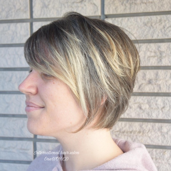 ショートボブにレイヤーをたくさん入れて、