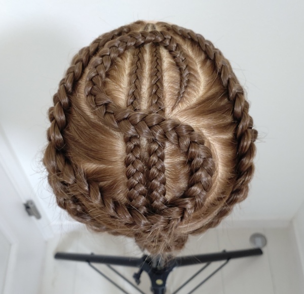 順序としては最初に中央の2本、次にS字部分、最後に残った髪を前から後ろにかけて編み込みました。
