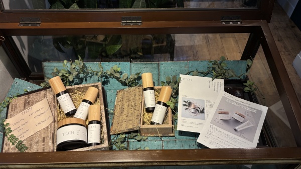 TEONは100%オーガニックなのでディスプレイの中も緑満載でデコレーションしました🍃