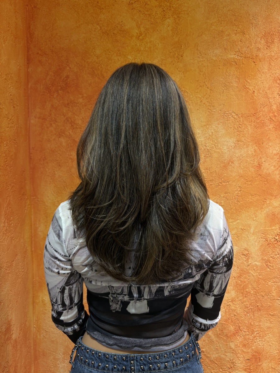 カットは毛先が軽くなりすぎないように、重たさを残しながらたっぷりレイヤーを入れて柔らかい印象に仕上がりました🌿