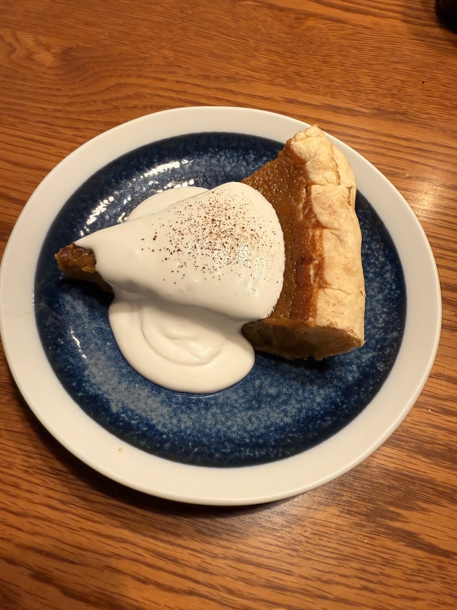 今は実家を離れているので、家族と共に過ごすことはできないのですが、母がパンプキンパイを作ってくれました!🥧