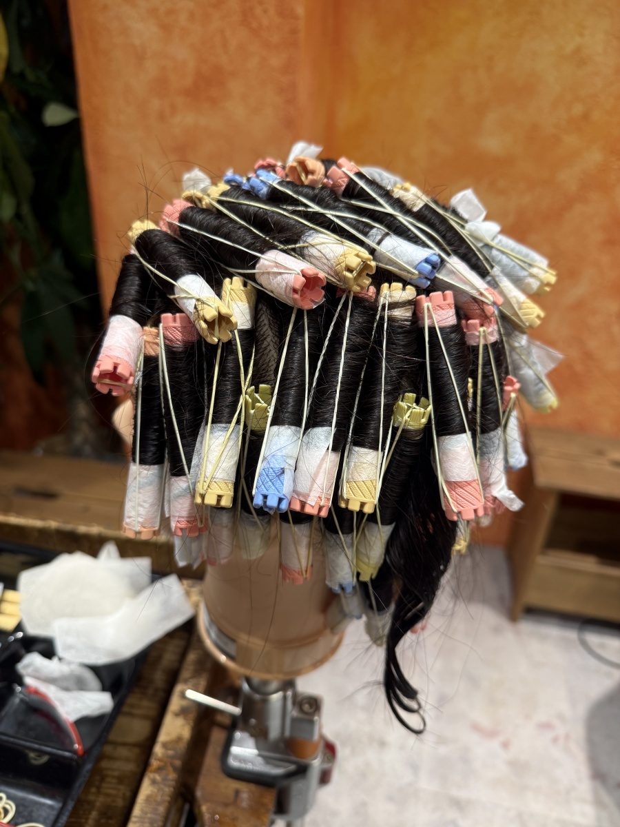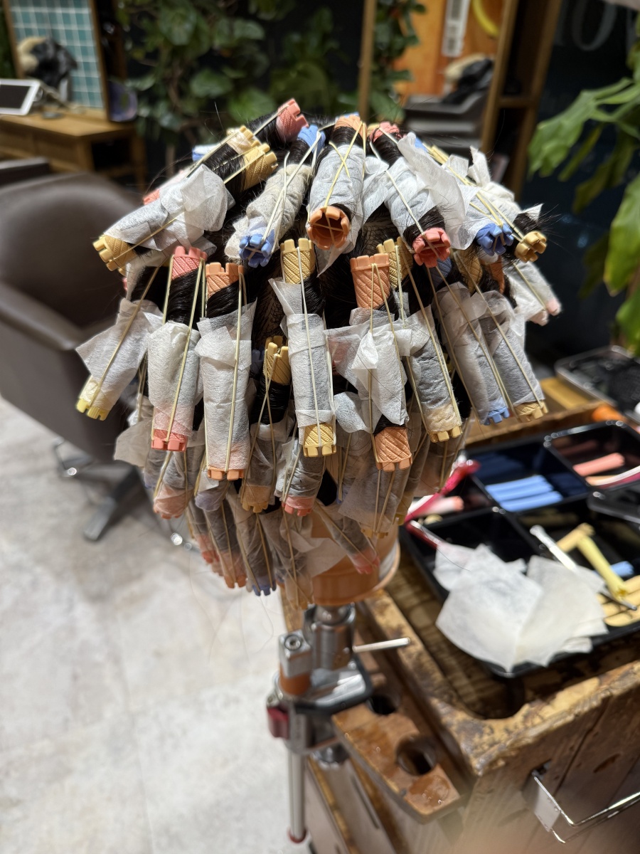 初めて行う巻き方であるのに加え、頭部の位置によって内側と外側に巻き分ける必要があるので苦戦しています😅