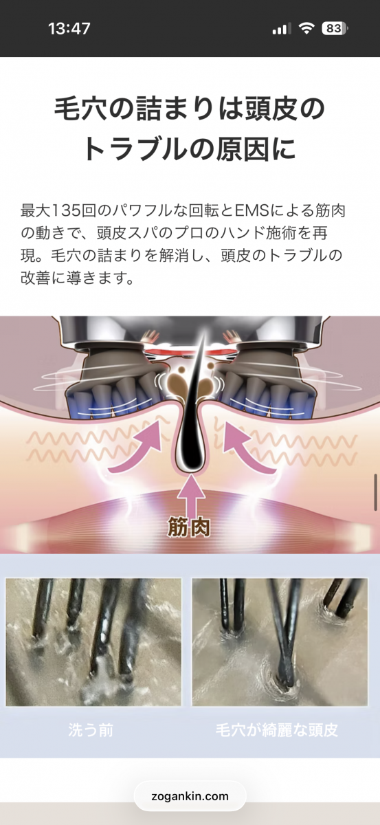 ゾーガンキンは、頭皮と体の両方に使えるEMSケア機器です。